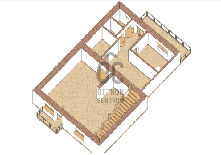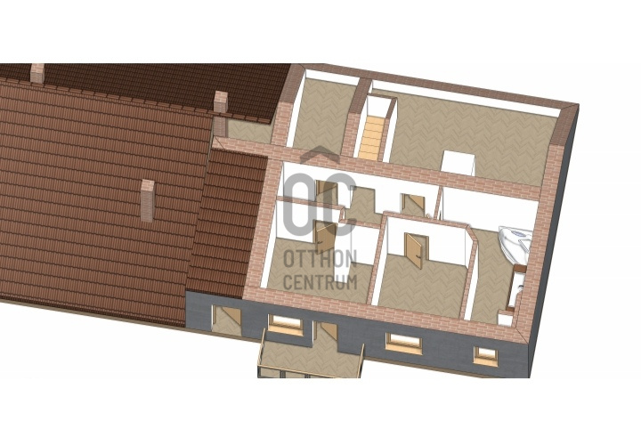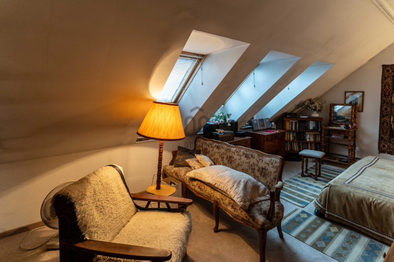 - a lakás a 3. és 4. emeleti szinten fekszik, mivel félnyereg-tetős, így csak 1 szoba + a tároló helyiségben vannak ferde falak,