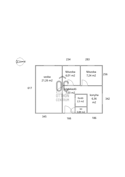 ✔️51 m2-es, 1+2 külön nyíló szobás.