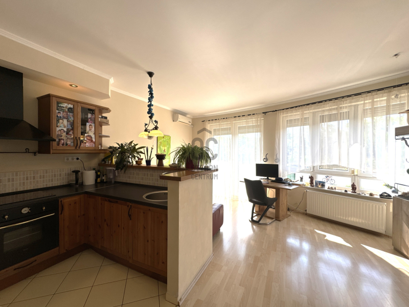 - A lakás elrendezése rendkívül praktikus, hiszen a két szoba mellett egy szeparált, teljeskörűen felszerelt konyha is kialakításra került.