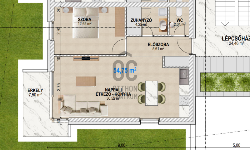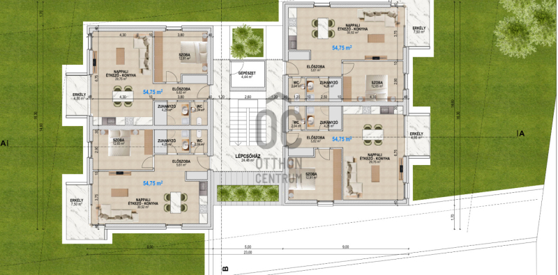 Az ingatlan az 1. emeleten helyezkedik el, 54,75 m2 alapterületű + 7,5 m2 erkély tartozik hozzá.Projekt bemutatása