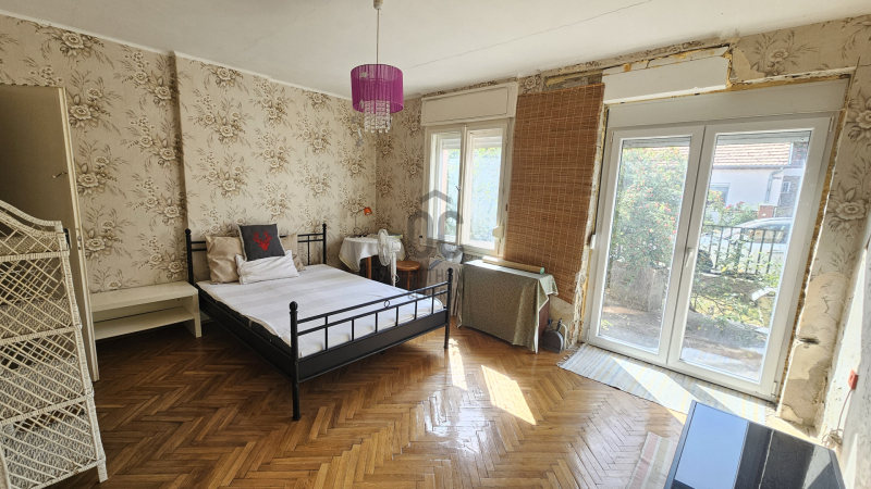 Keszthelyen, a Balatontól 150 méterre, felújítandó ikerház-fél eladó.Strand, vendéglő 150 méter, élelmiszerbolt 500 méterre található.