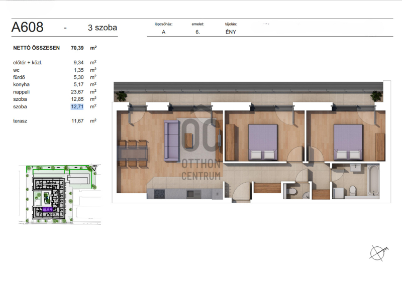 Nettó alapterület: 70,39 m2 + 11,67 m2 erkély.Projekt bemutatása