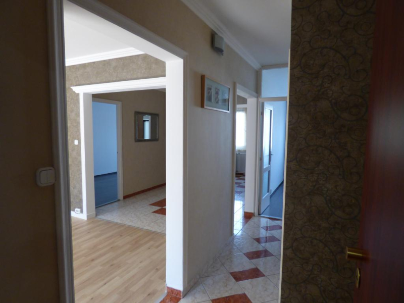 A lakásban egy közel 30 m2-es nappali,konyha, étkező, két külön nyíló hálószoba, kádas fürdőszoba és külön wc és egy igényesen beépített gardróbszoba található.A folyosón végig beépített gardrószekrényben sok tárolóhely van.