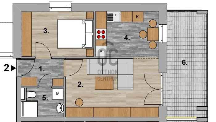 D épület 2. emeleti nappali 1 hálószobás lakás erkéllyelProjekt bemutatása