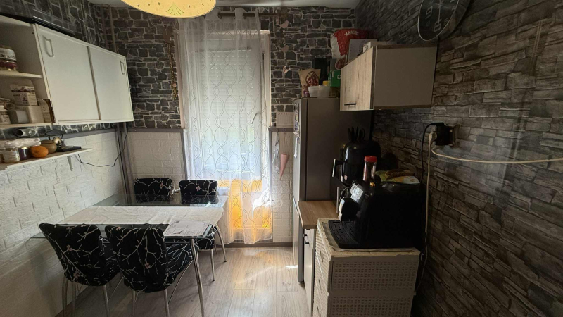Jó állapotban,kettő szobával,fürdővel és konyhával,keleti fekvésű erkéllyel és közös tárolóval!!