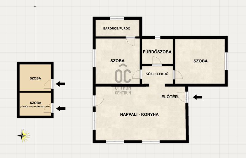 -Nettó 19 m² melléképület: 2 szoba + fürdő előkészítéssel