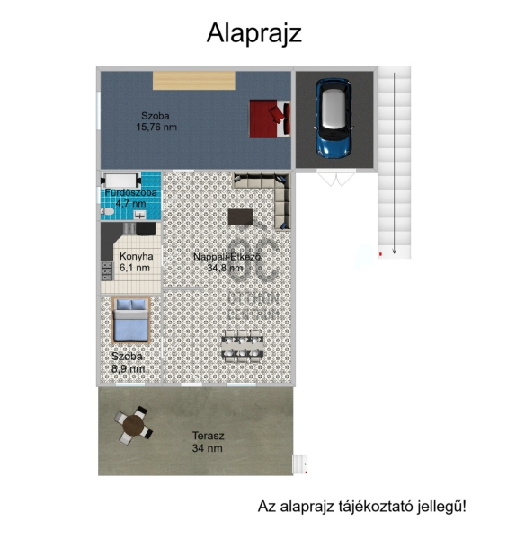 hatalmas terasz, amely akár beépíthető, így további helyiségek alakíthatók ki