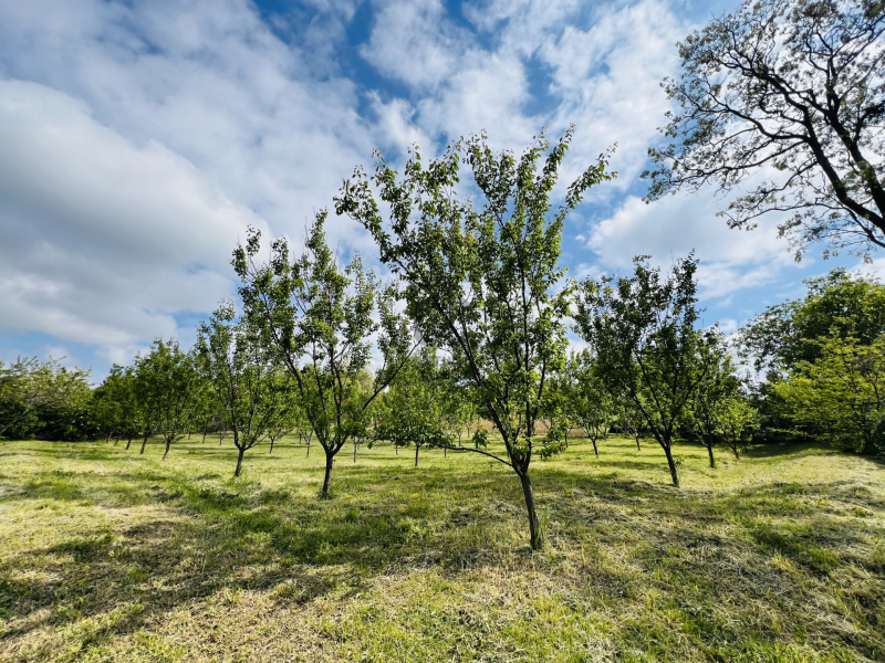 Jelenleg folyamatosan gondozott, termő barackfákkal beültetve.