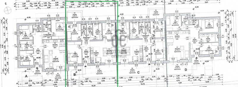 • a két szélső lakás nettó 90 m2, a két középső nettó 84 m2