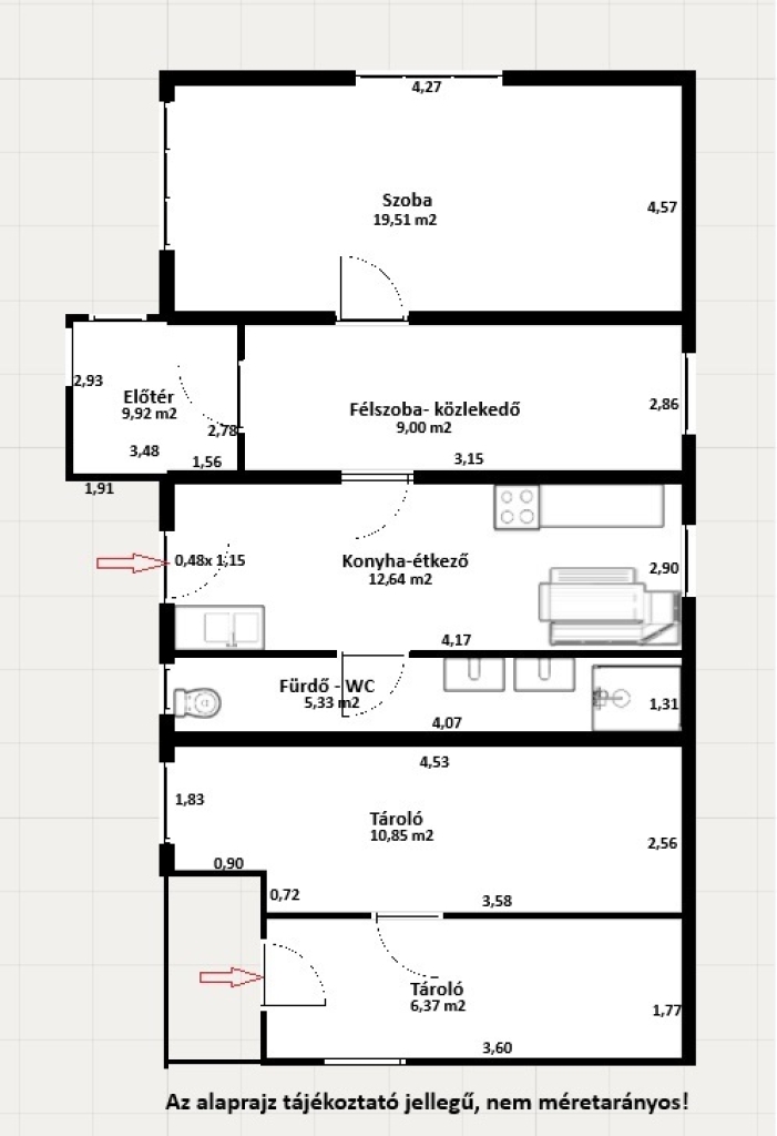 • Lakótér: 56,4 m², melléképülettel együtt bruttó 70,62 m²
