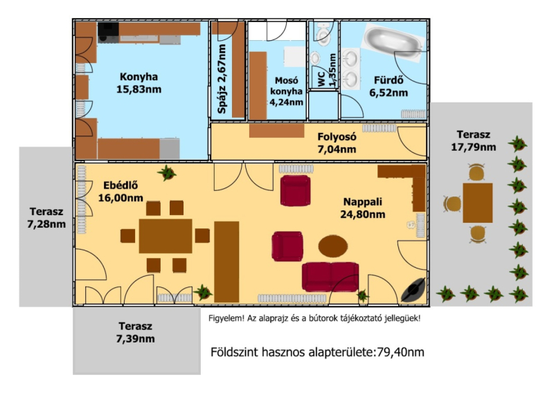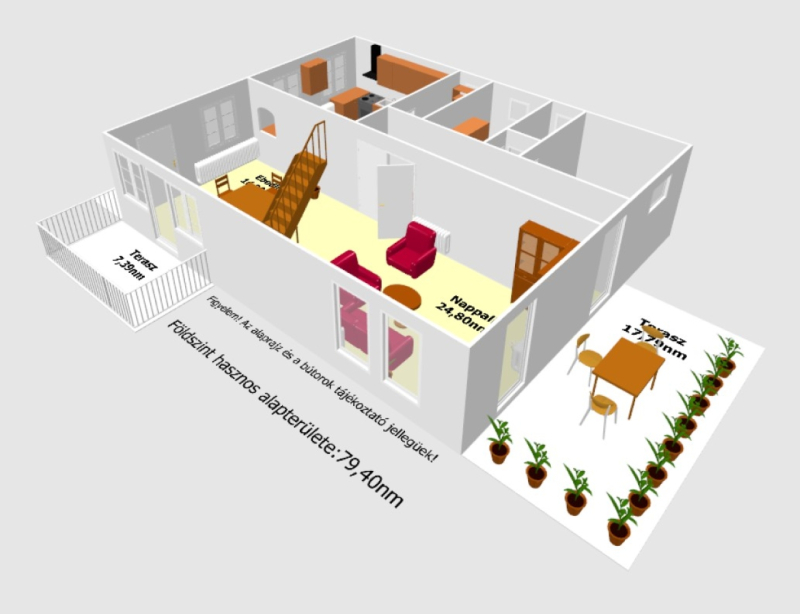 - a földszint hasznos alapterülete: 79,40nm,