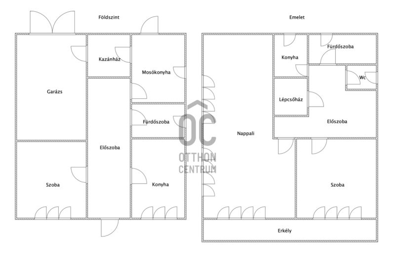 - földszinten: előszoba, konyha, nappali, fürdőszoba, kazánház, háztartási helyiség és garázs található