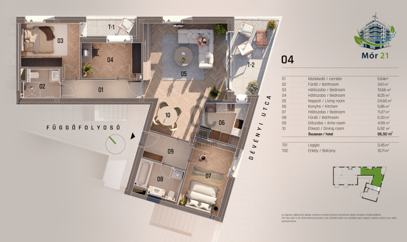 Projekt bemutatásaA Mór utca és Dévényi utca sarkán, egy hangulatos saroktelken épül fel ez a 23 lakásos, modern megjelenésű, mégis a környezetébe harmonikusan illeszkedő társasház. A kivitelezés során kiemelt figyelmet kapott a benapozás, a jól élhető terek kialakítása, valamint a magas műszaki tartalom.
