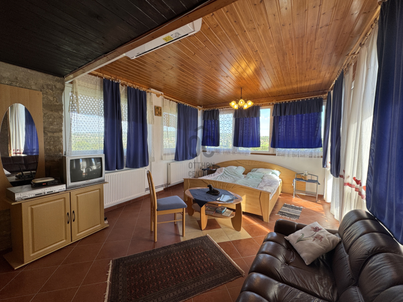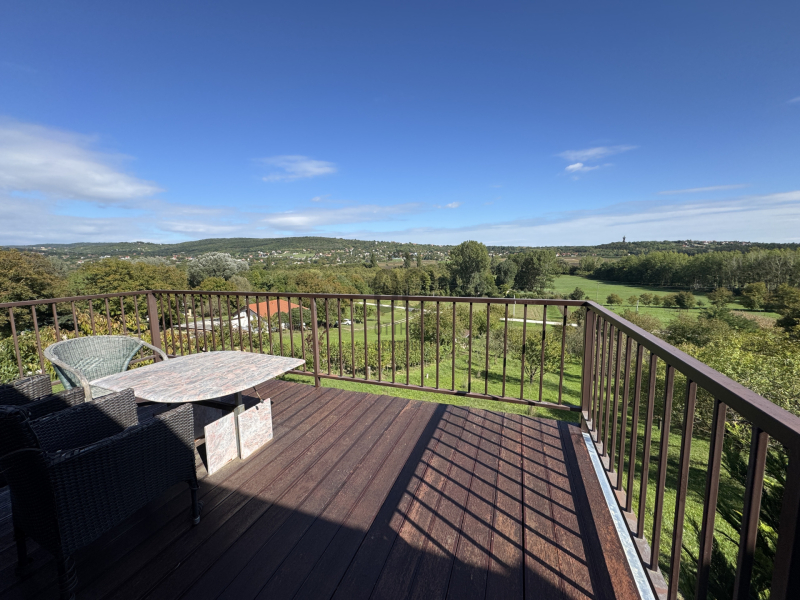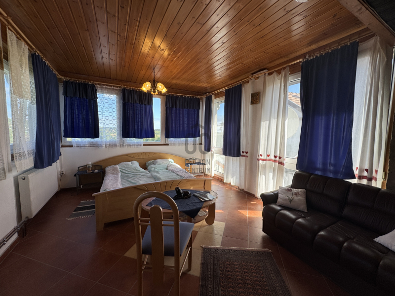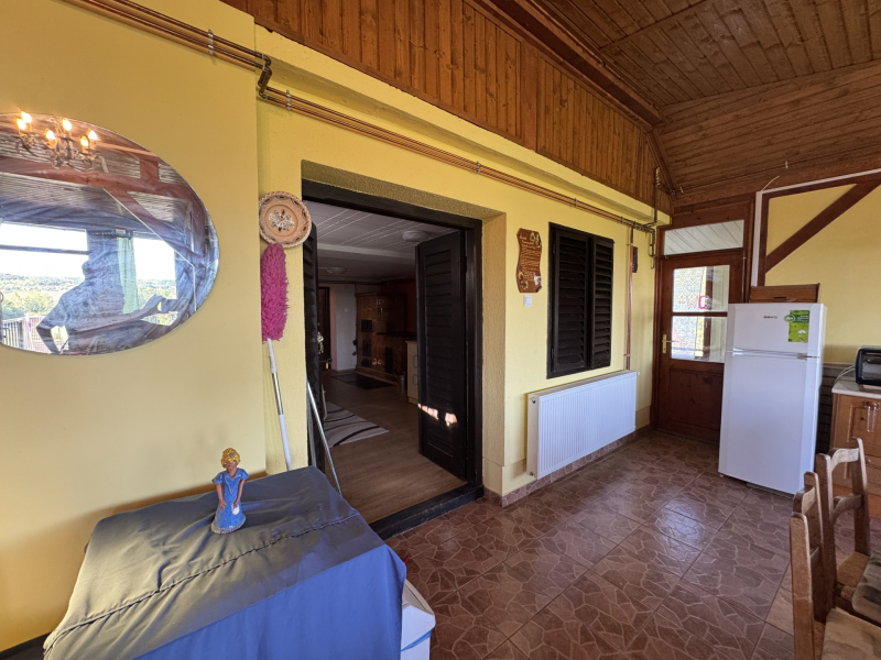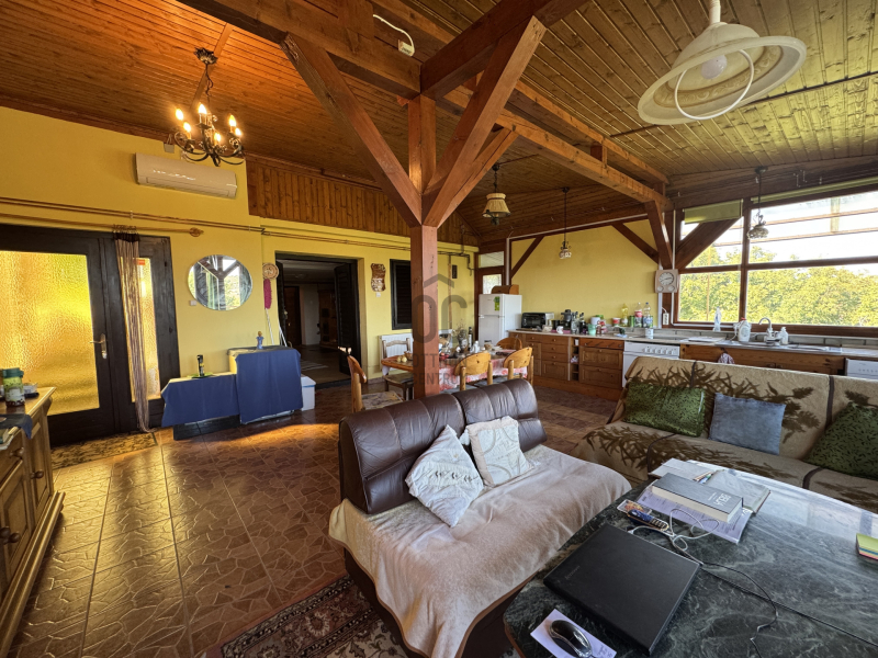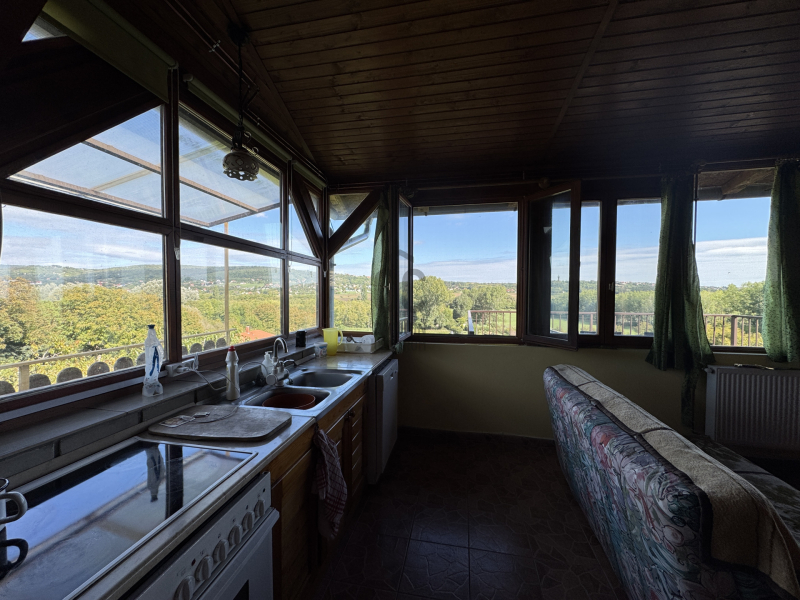 Örök panorámás nyaraló , külön apartmannal eladó Hévíz legszebb részén. Állandó lakhatásra is alkalmas, gondozott kerttel, cserépkályhával . A fő épületben nyitott konyha nappali es háló helyiség tálalható, körben üveg ablakokkal, igy állandóan élvezhetjük a panorámát. Innen nyílik egy vendég szoba, fürdőszoba. Ezen a szinten külön WC es fürdőszob...