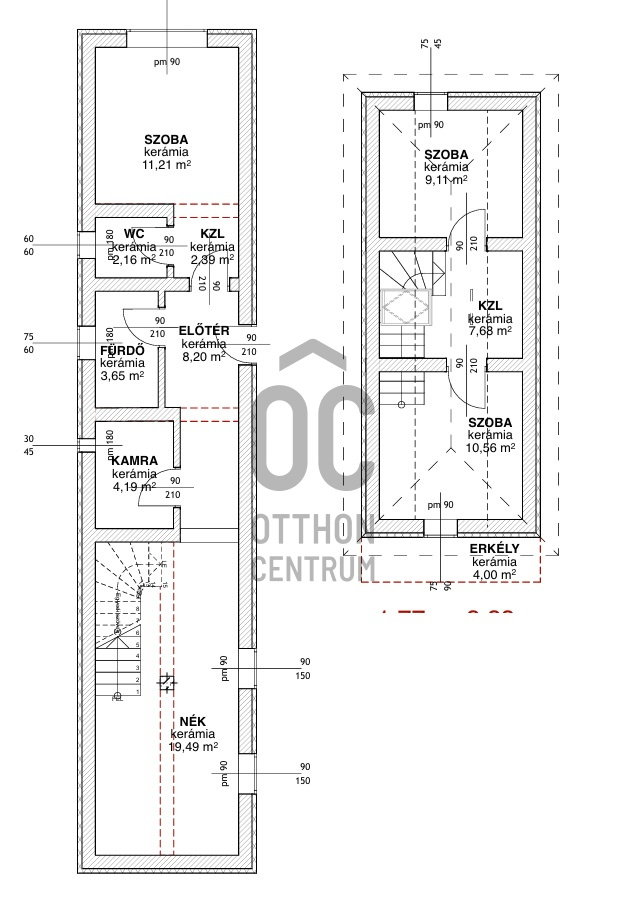 • fűtése: gázcirkó, alsó szinten padlófűtés, emeleten lapradiátor