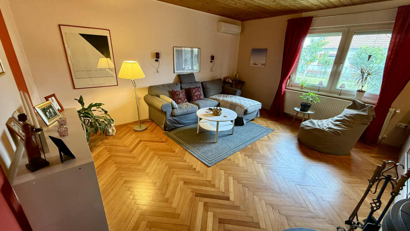 Három tágas,világos szoba,nappali,gépesített,modern konyha,tároló,és kettő fürdőszob...