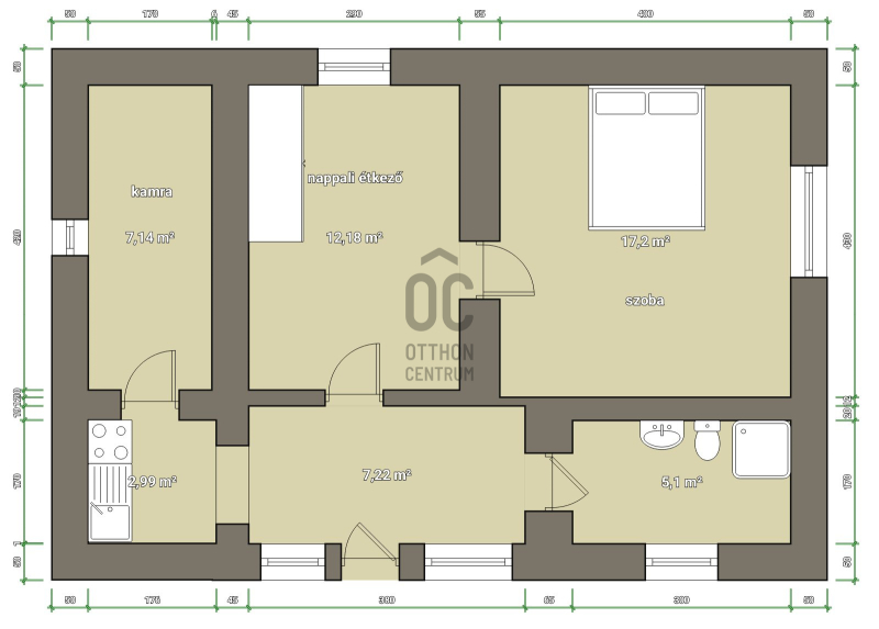 - 2 szoba,