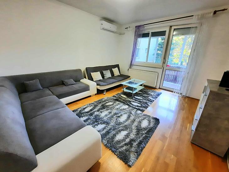Jó állapotú, két szobás lakás, az előszobában beépített szekrénnyel és a nappaliban klímával felszerelve. A szobákban fa parketta, a többi helyiségben járólap található. H...