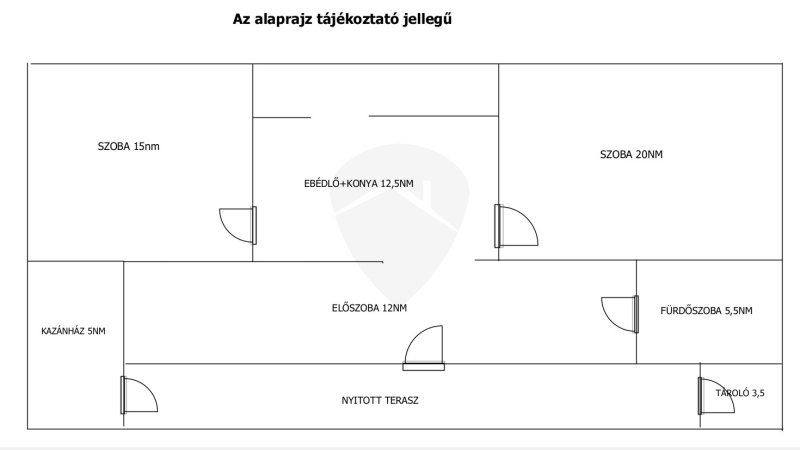 - Konyha + étkező: 12,5 m²