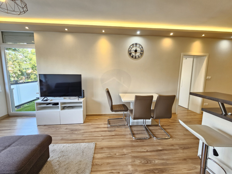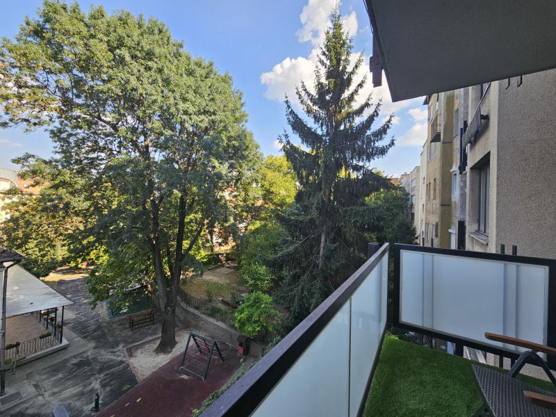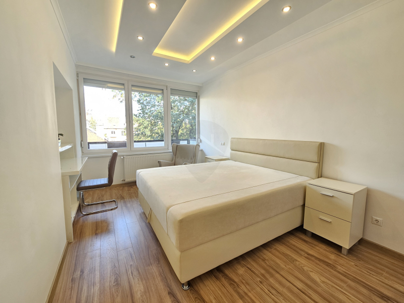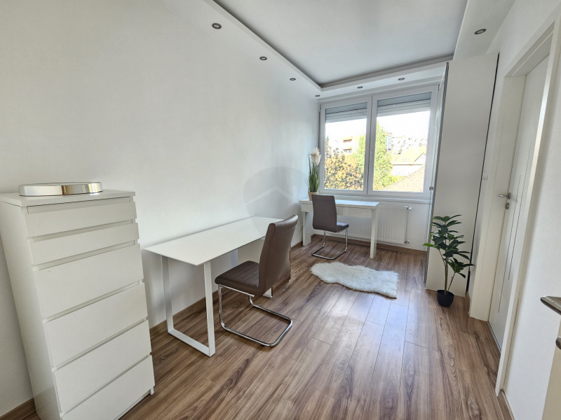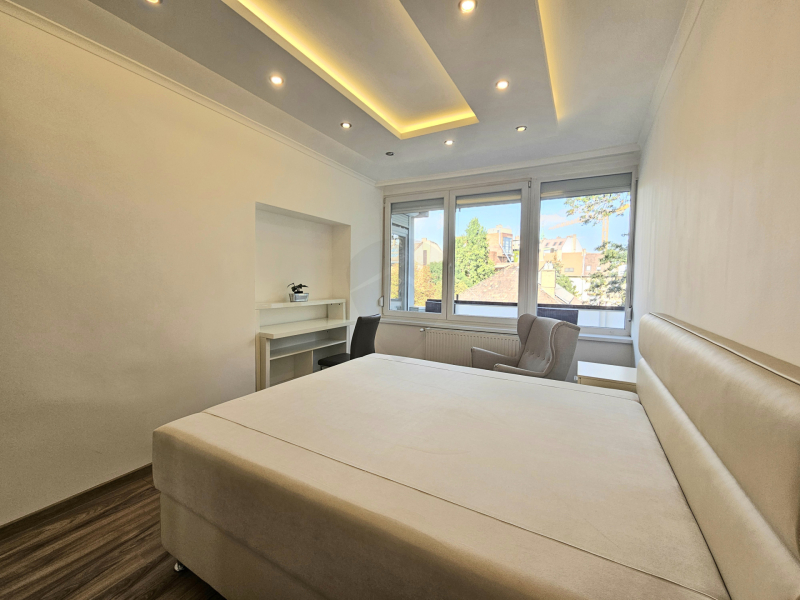 A lakás egy csendes társasház 2. emeletén található, az épületben van LIFT!Nagy előnye, hogy az amerikai konyhás étkezős nappaliból külön nyílik még 2 hálószoba, valamint egy keleti fekvésű erkély, mely belső parkra néz. A szobában minőségi franciaágy matraccal gondoskodik a pihentető alvásról.