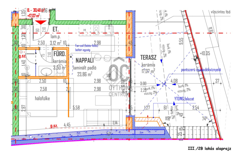 III. emelet 2/B. lakás 33 nm + 17 nm terasz: