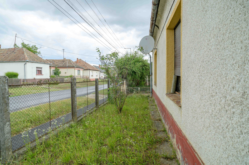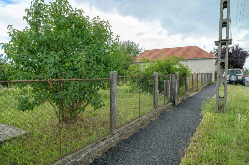 A telek utcafronti szélessége kb. 40 méter, kerítéssel védett, egyik oldalán kiskapuval a másik oldalán nagykapuval szerelt.
