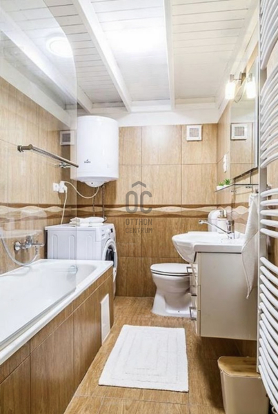 Modern fürdő, beépített gépek, klíma, elektromos redőnyök