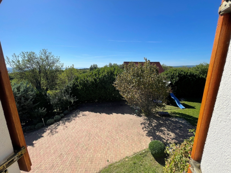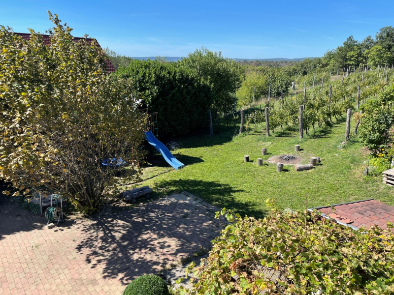 Panorámás szőlőhegyi ház Balatonfüreden – borospince, terasz, nagy telek!Balatonfüred csendes szőlőhegyi részén, 1868 m²-es telken eladó egy bruttó 158 m²-es kitűnő állapotú, igényes, Tihanyra néző panorámás ház téglaboltozatos borospincével, tágas terasszal, modern gépészettel és gondozott szőlővel.