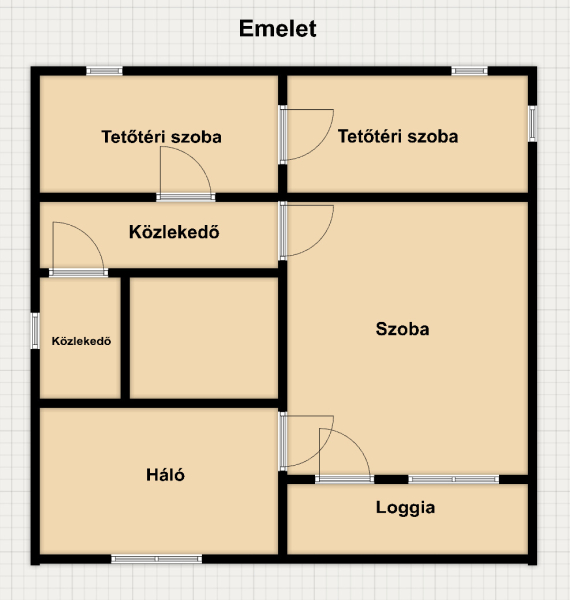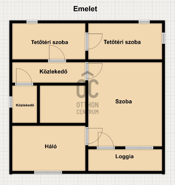 A tetőtérben 3 szoba (az egyik erkélyes), és WC.