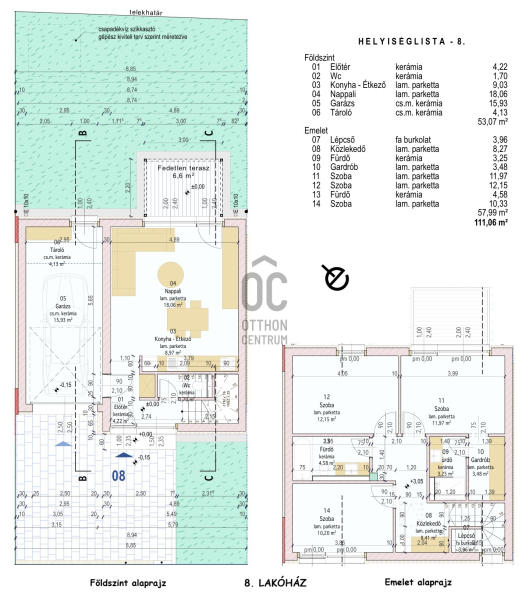 8. lakóház Br. 118 nm, nappali + 3 hálós:Földszint: