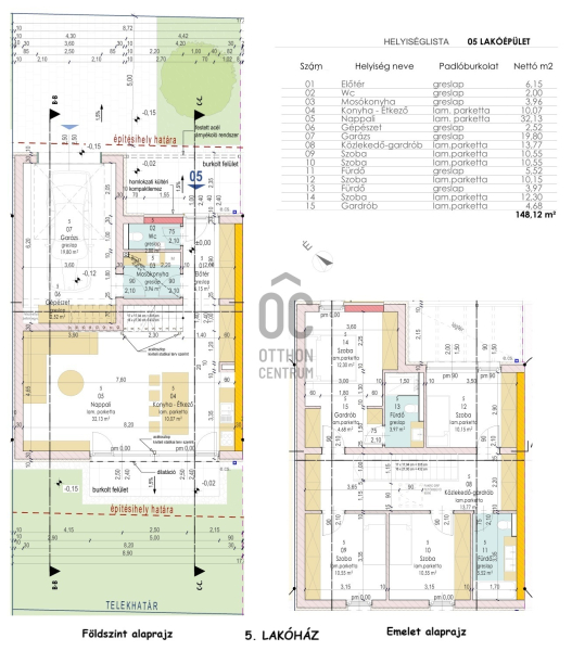 5. lakóház Br. 155 nm, nappali + 4 hálós:Földszint: