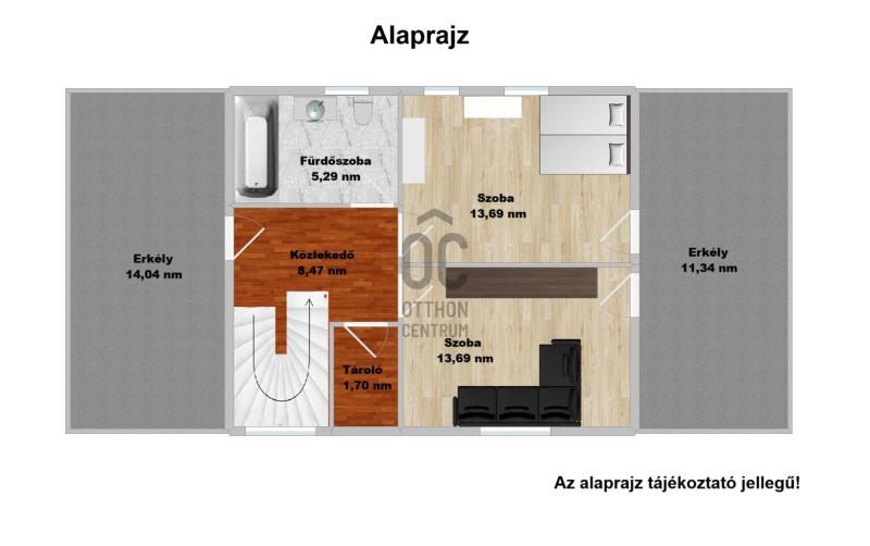 3 szoba + amerikai konyhás nappali + 2 fürdőszoba