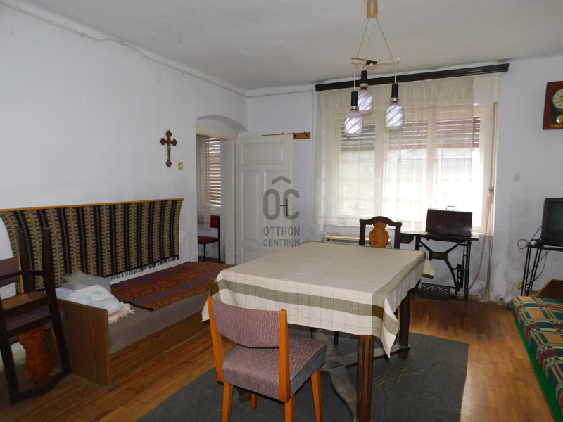Régi sváb elrendezésű, melyben helyet kapott egy előszoba-nappali ,két tágas hálószoba, konyha, kamra, valami...