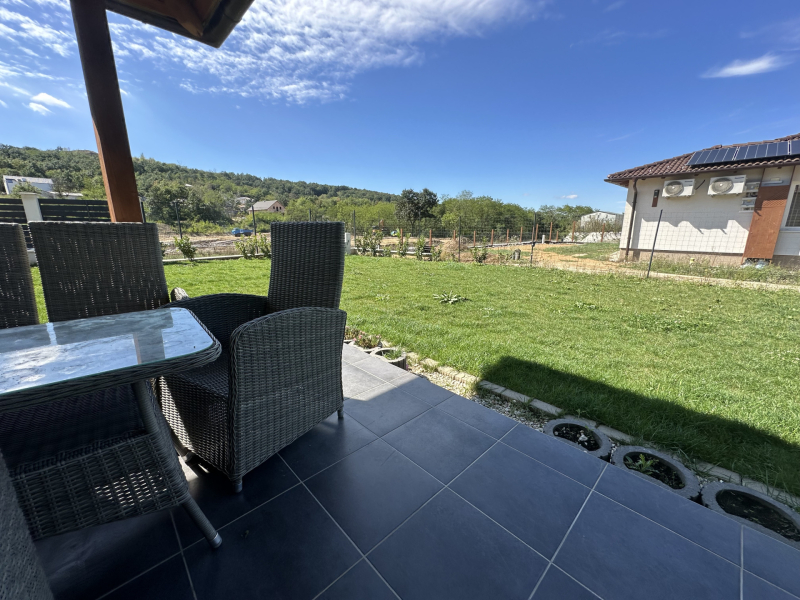 Pilisjászfalu , Somlyó-völgy területén parkosított kertben igényes, sarok telken ikerház rész eladó.PILISJÁSZFALU belterületén, csendes, erdős részen, a Somlyóvölgyi lakóparkban megfizethető, földszintes, 70 nm-es ikerház rész eladó.