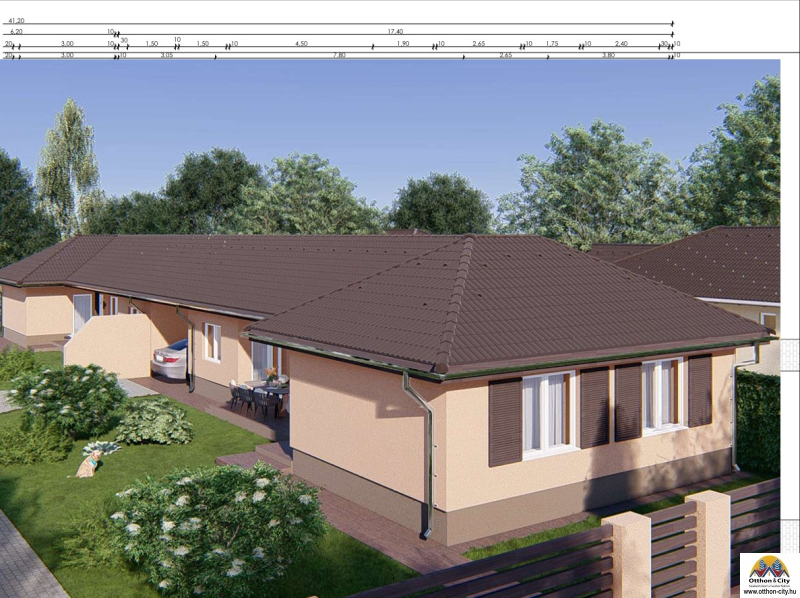 Az ingatlanok között fedett autóbeálló épül, így nincs közös fal, garantálva a teljes privát szférát és za...