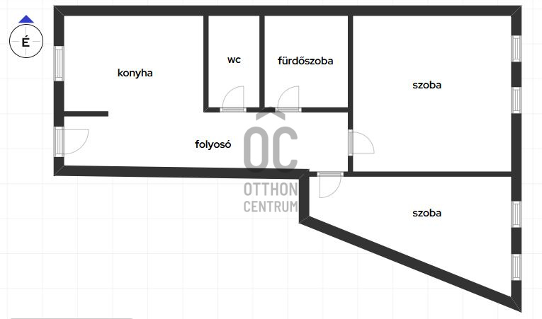 A lakás ideális elrendezésű, 2 szoba, konyha-étkező és különálló fürdőszoba és WC-ből áll.