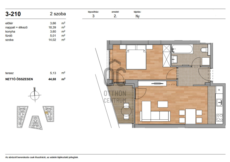 Az ingatlan nettó alapterülete 44,68 m² + 5,13 m² erkély.Projekt bemutatása