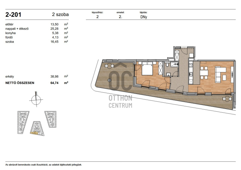 Az ingatlan nettó alapterülete 64,74 m² + 38,98 m² erkély.Projekt bemutatása