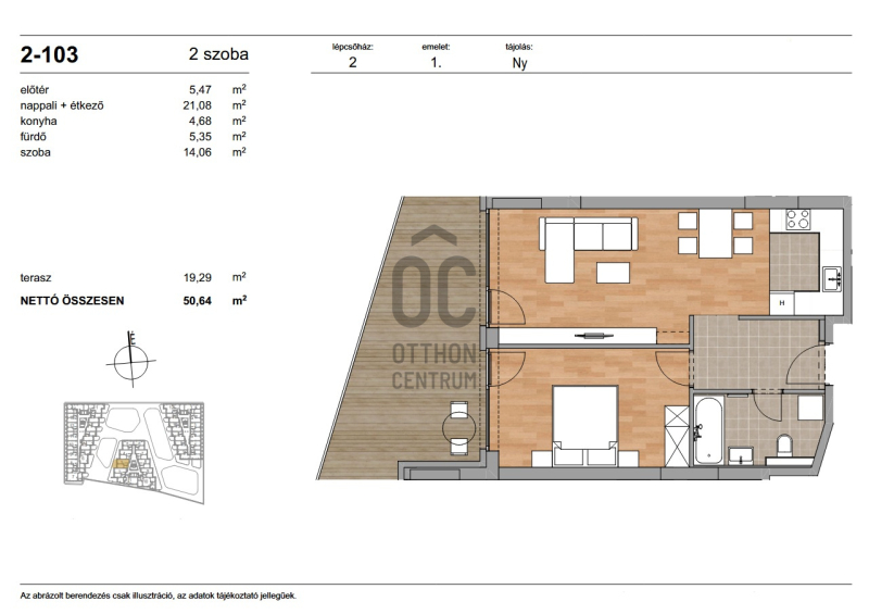 Az ingatlan nettó alapterülete 50,64 m² + 19,29 m² terasz.Projekt bemutatása