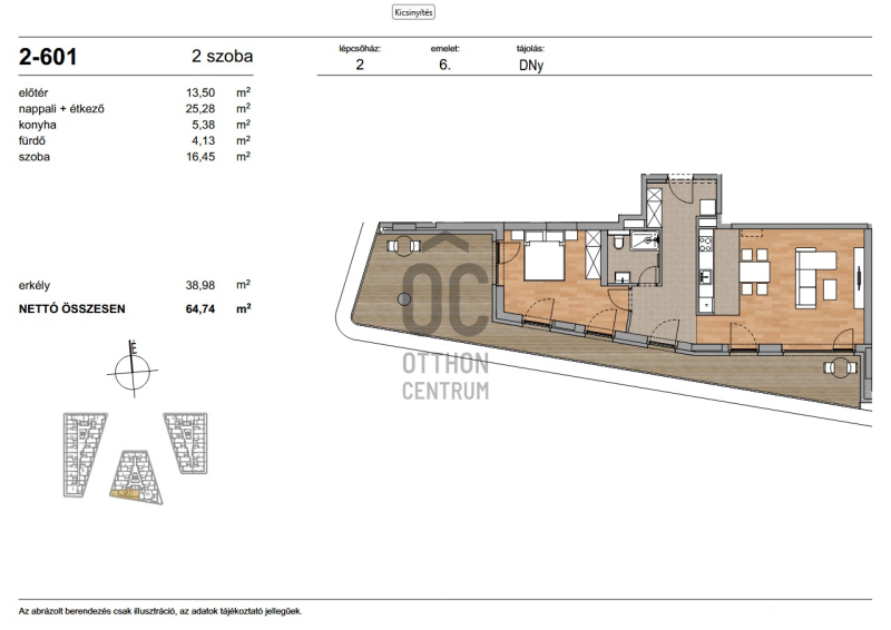 Az ingatlan nettó alapterülete 64,82 m² + 38,98 m² terasz.Projekt bemutatása