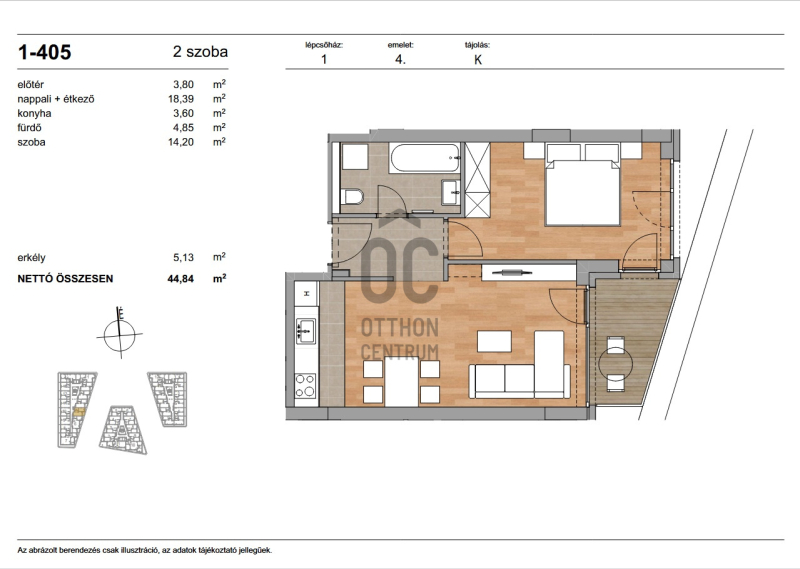 Az ingatlan nettó alapterülete 44,84 m² + 5,13 m² terasz.Projekt bemutatása