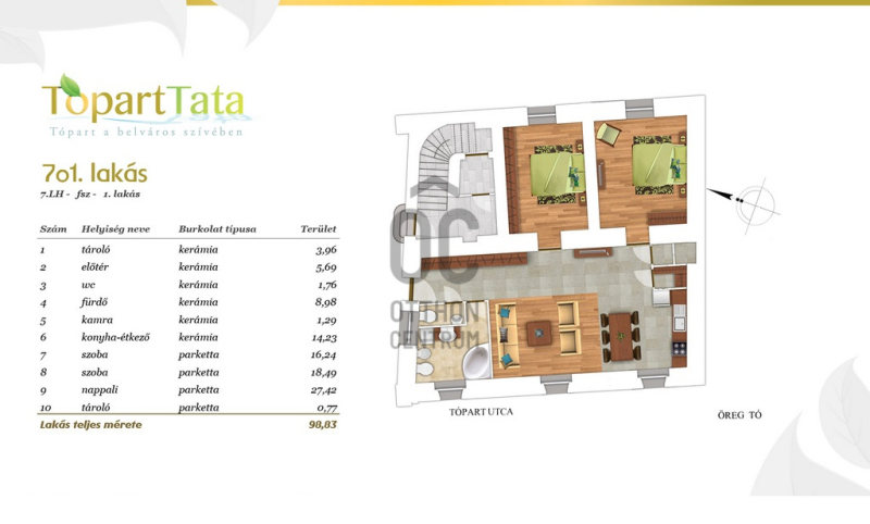Egyedi fekvés, egyedi ajánlat!Tatán az Öreg-tó partján 2016-ban épült 45 lakásos, zárt lakópark müemlék épületének földszintjén található, 3 szobás, teljeskörűen berendezett, önálló fűtési rendszerrel ellátott otthon eladó. A lakást a magas minőség, elegancia, praktikus elrendezés és az élhető terek jellemzik.