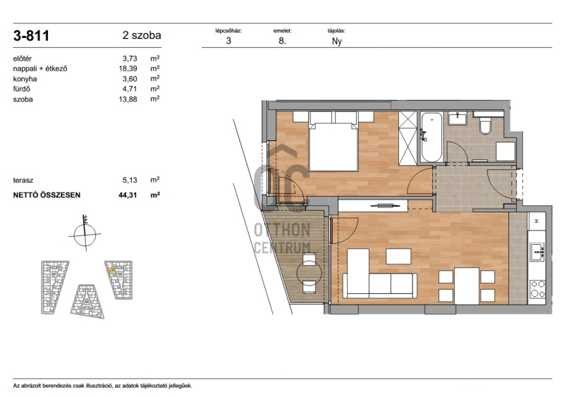 Az ingatlan nettó alapterülete 44,31 m² + 5,13 m² erkély.Projekt bemutatása