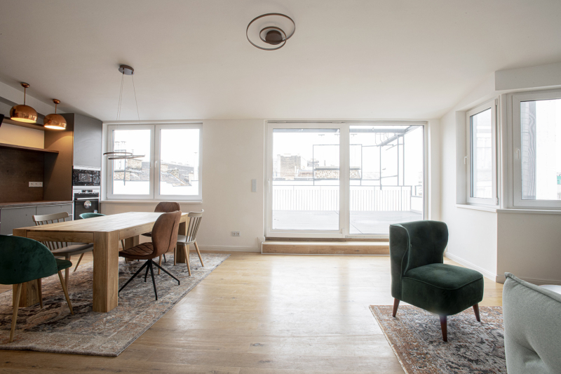 Most induló tetőtér ráépítéssel kialakításra kerülő 9 lakásos projekt keretében kínálok eladásra egy minden igényt kielégítő, belső kétszintes luxus apartmant nagyméretű tetőterasszal, télikerttel Budapest Belső VI. kerületében a Pesti Broadway szívében, a Nagymező utcában.Pár perc sétára van a Zeneakadémia, Operaház, a világörökség részét képező ...