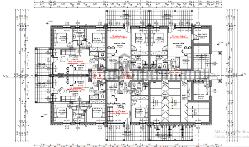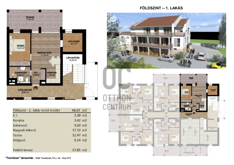 - 46,63 nettó alapterülete plusz 17,85 nm-es terasz
