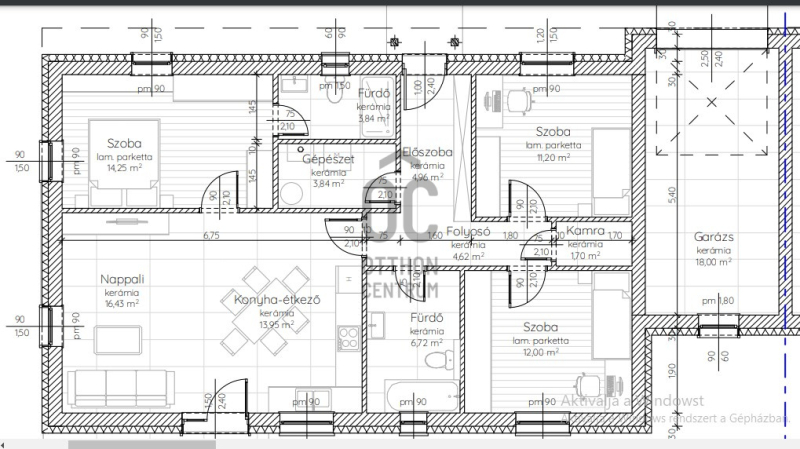 netto 93 m2 - 1db amerikai konyhás nappali, ebédlő 32-34 nm 3 hálószoba