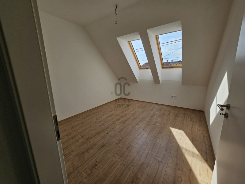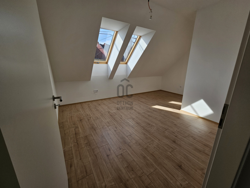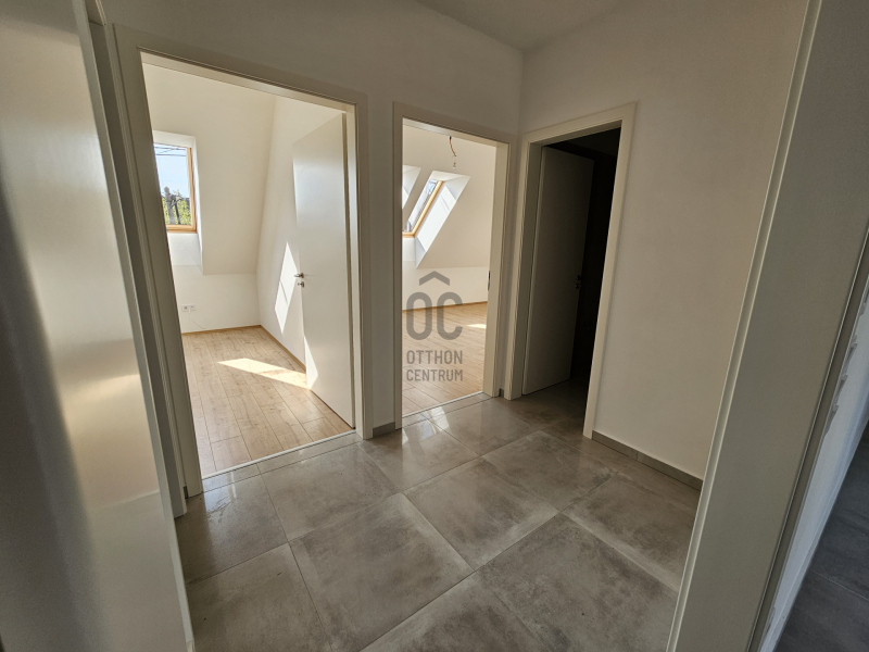 Emeleti, tetőtér-beépítéses lakás 58,73 m2 hasznos alapterülettel, két hálószobával eladó. A lakás alaposan átgondolt tervezésű, kellemes méretű erkéllyel rendelkezik.