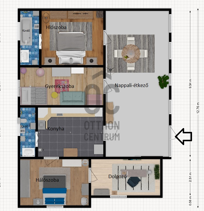 4 külön nyíló hálószoba, nappali, tágas konyha, 2 fürdőszoba!