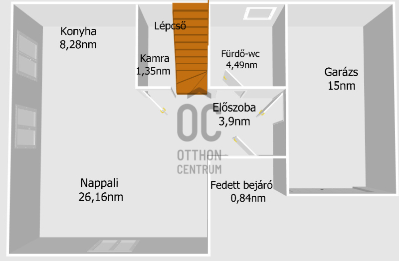 Lakóterület :105m2 +garázs + terasz.16m2