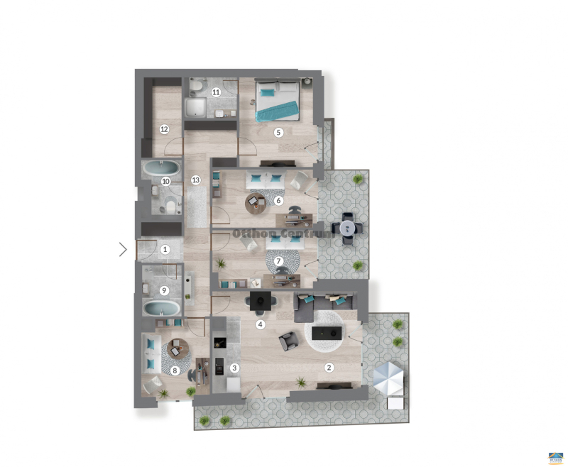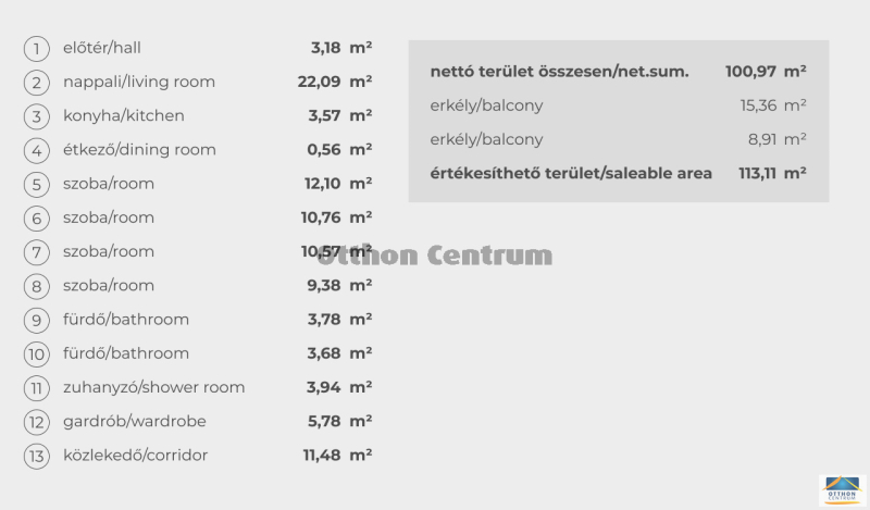 XIII. Patak part közelében, 5 szobás, 2. emeleti ingatlan.A lakás 100,69 nm alapterületű, 2 terasszal (14,96+8,83 nm) rendelkező ingatlan.